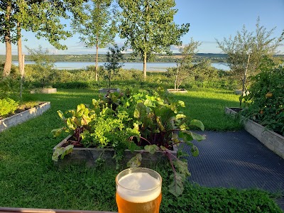 Microbrasserie artisanale avec terrasse et vue sur le fleuve Saint‑Laurent.